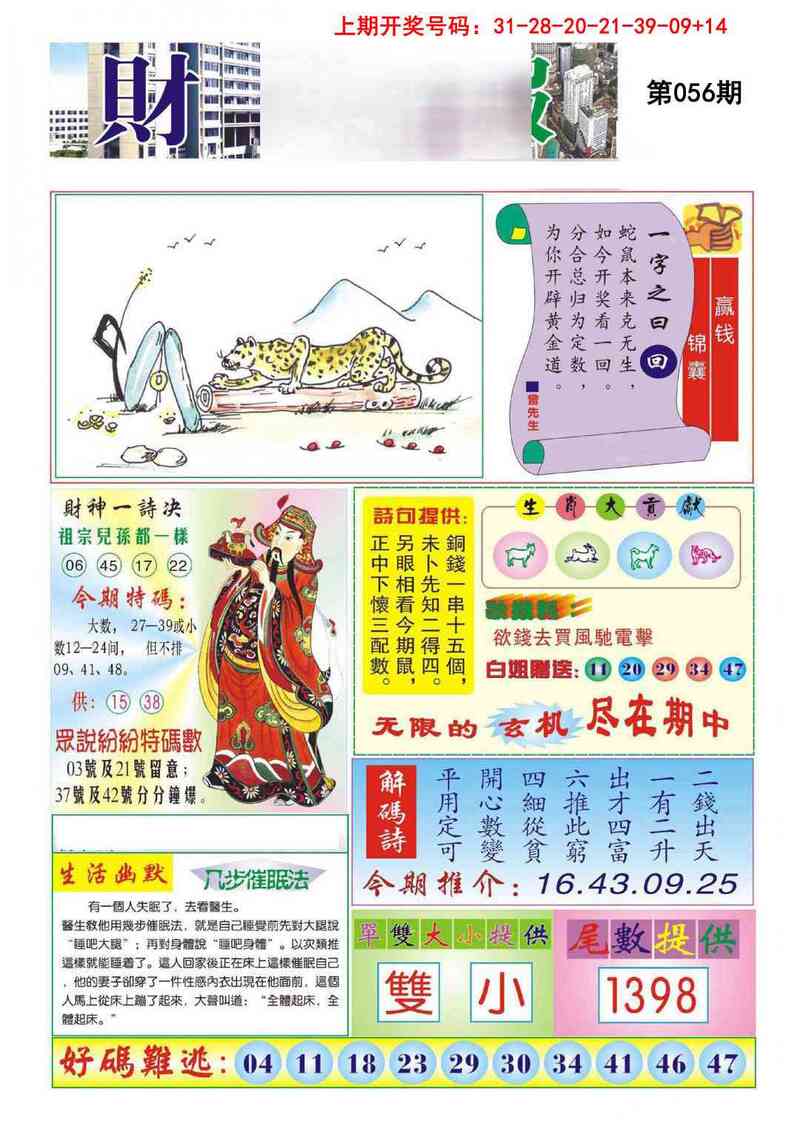 | 047期⑤码 | 11.06.41.13.21 | 开:龙39 |